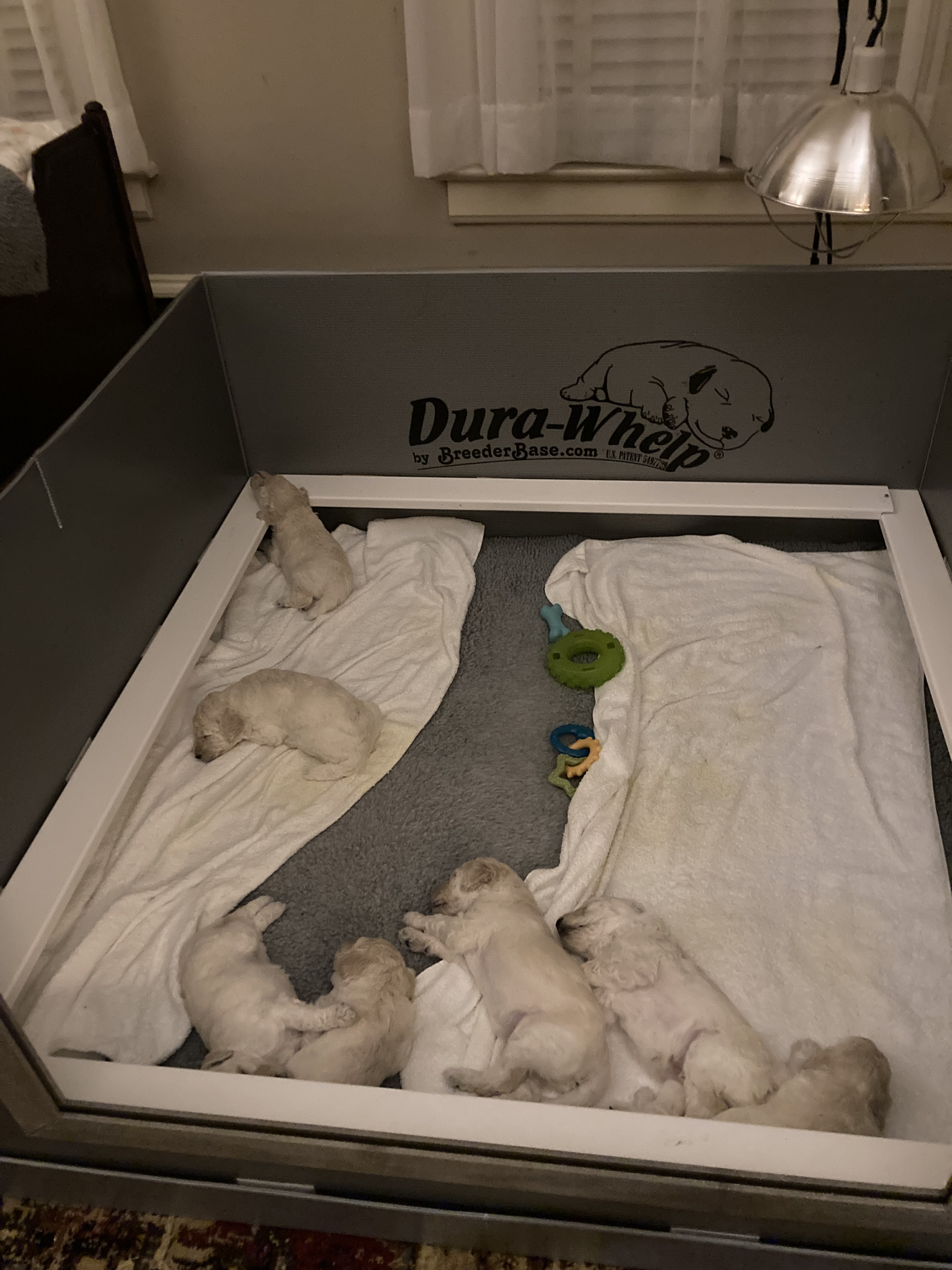 Laurren and Chantz Segraves and I bred 5 Sisters Summer Bouquet (Bou) to GCH Brighton Benchmark (Ra). Seven puppies were whelped on August 9, 2023.